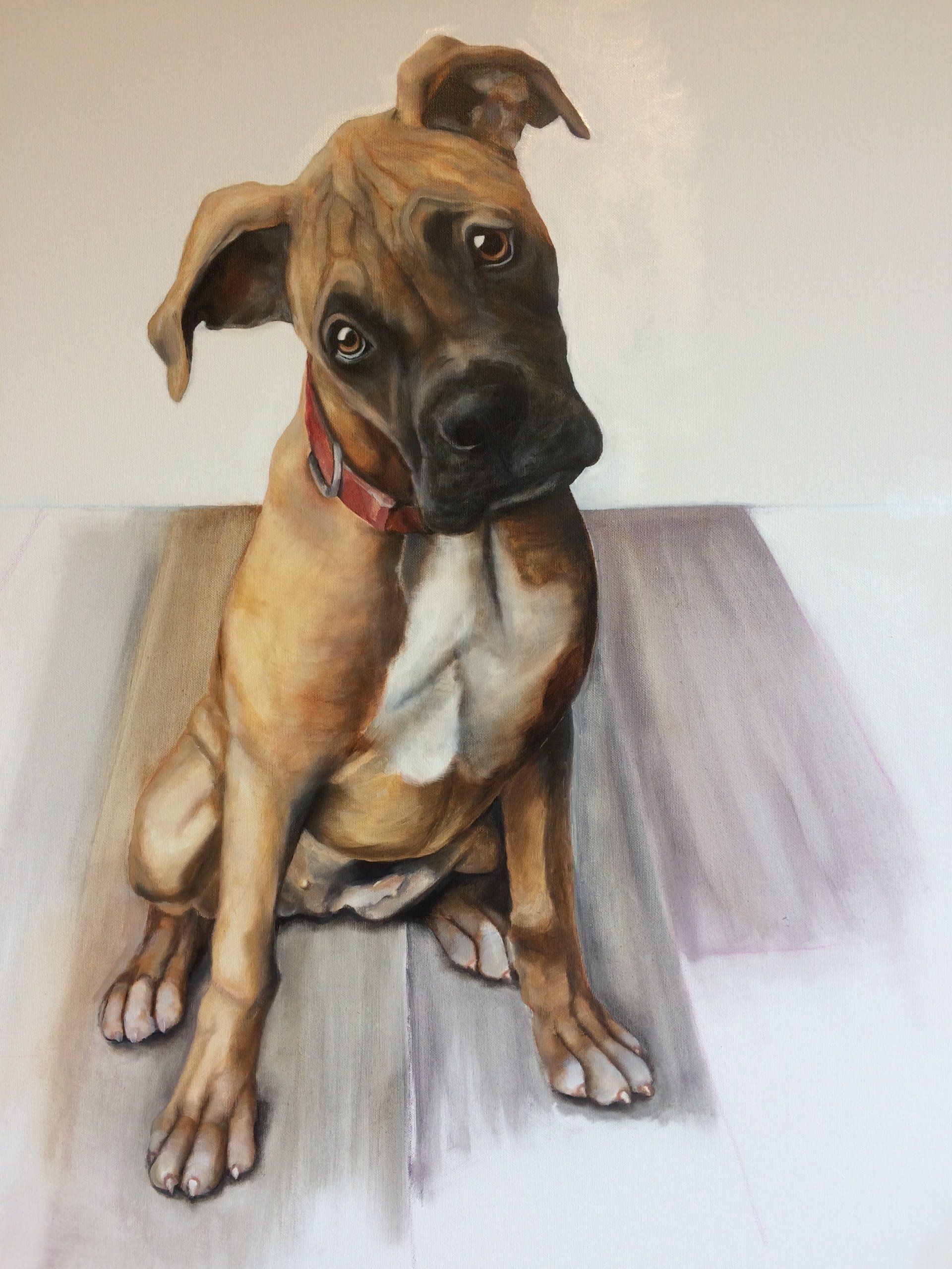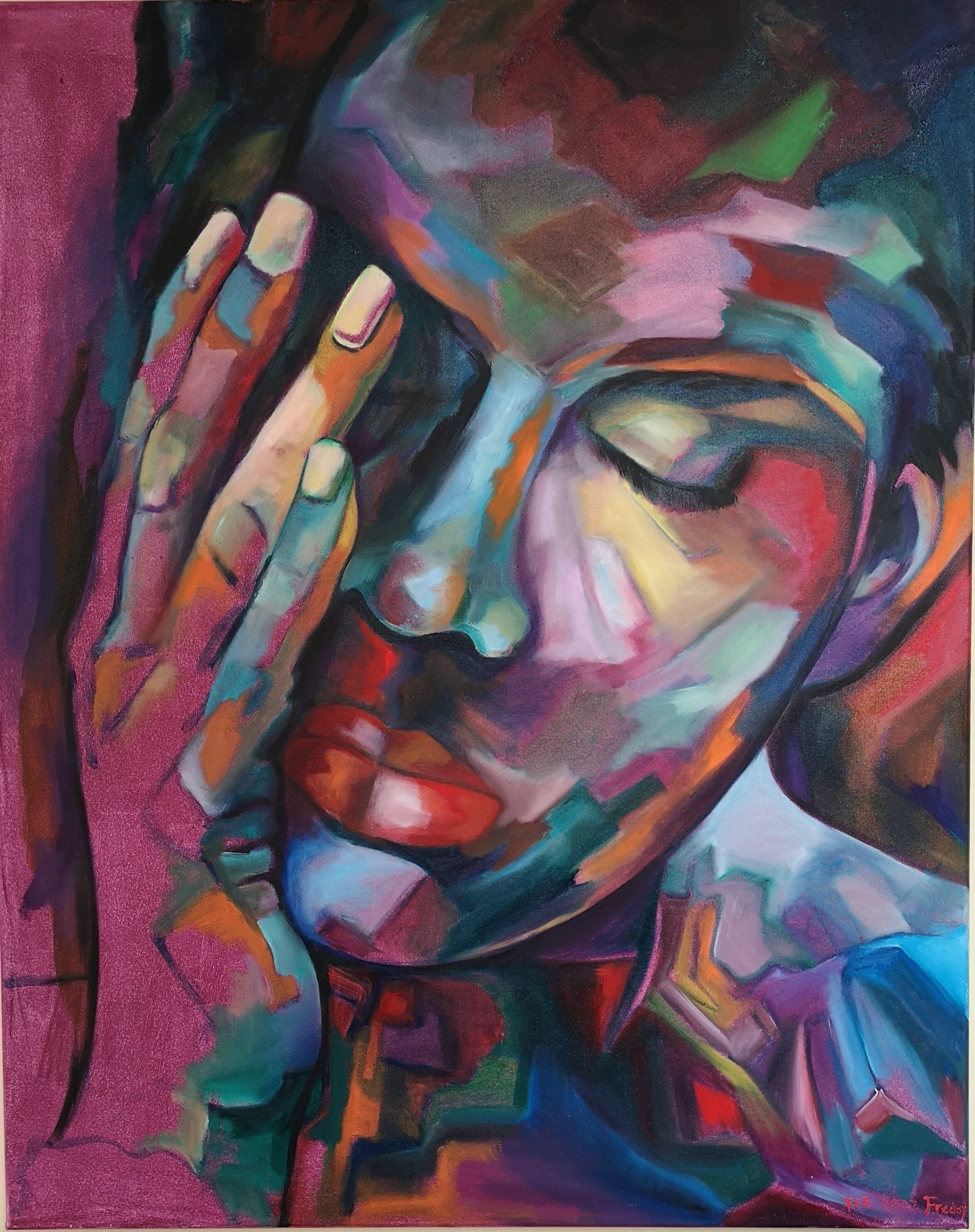 Dagelijks werk ik aan mijn schilderijen, zo’n vier uur per dag: ik word er blij van!