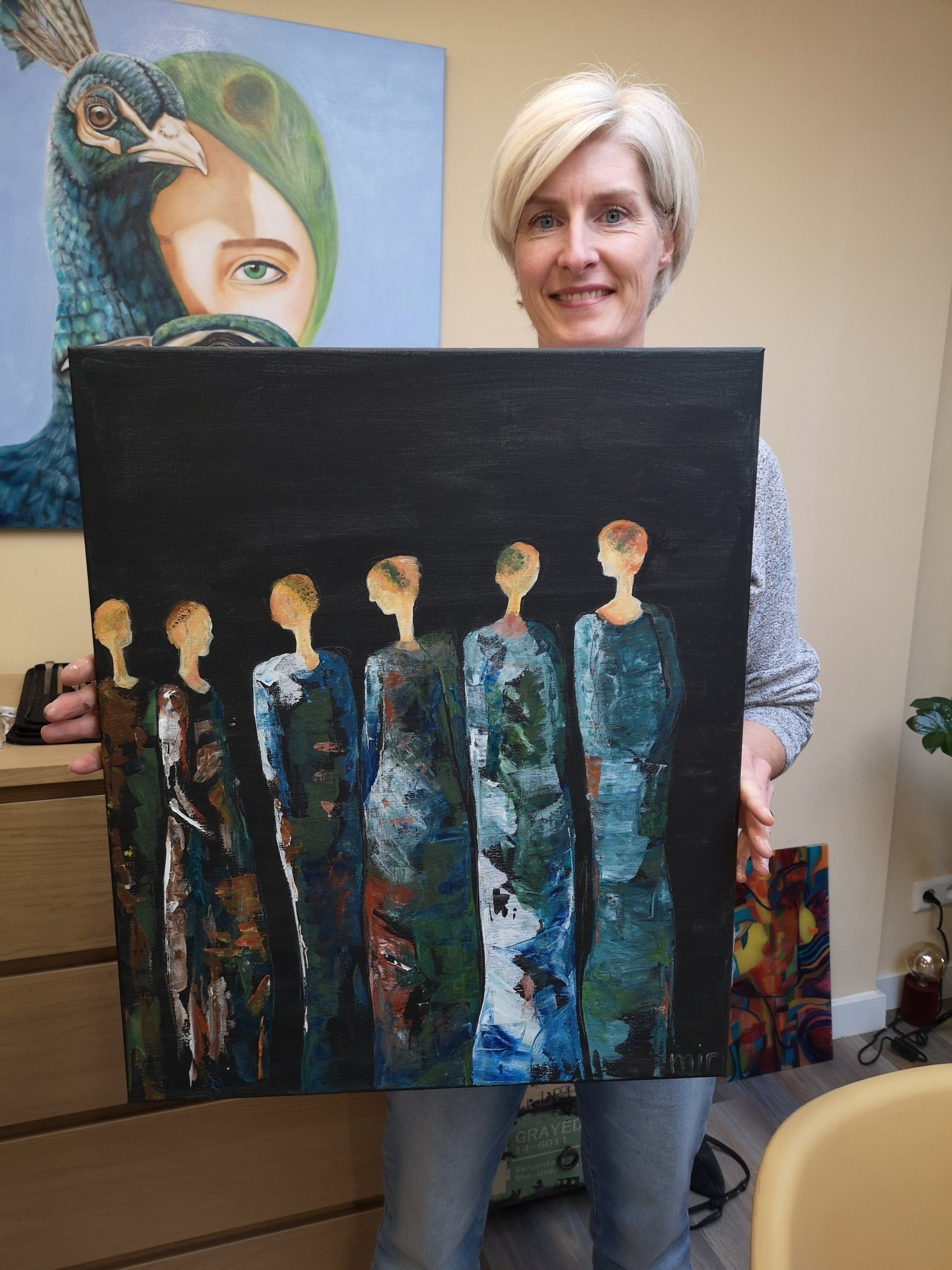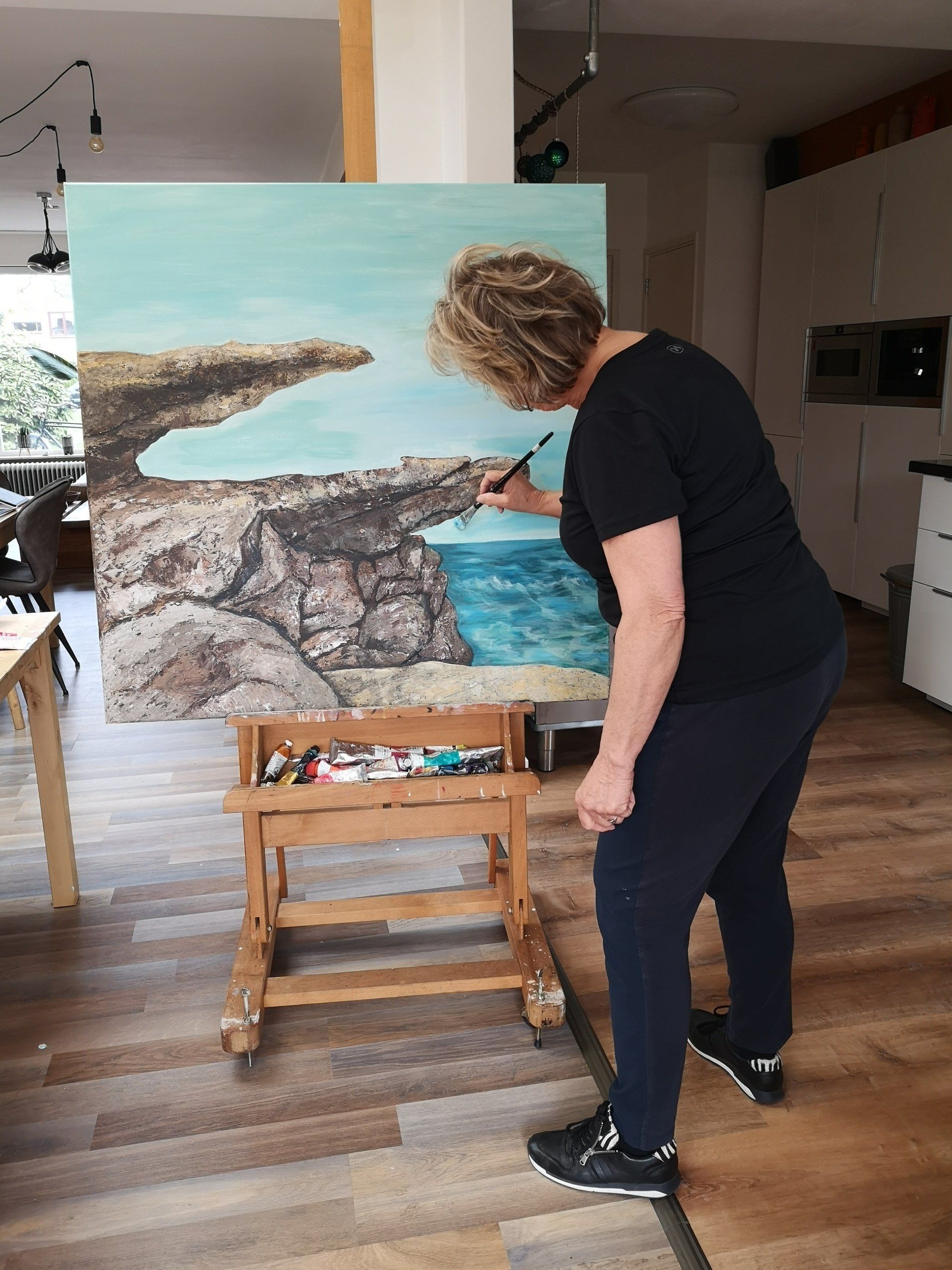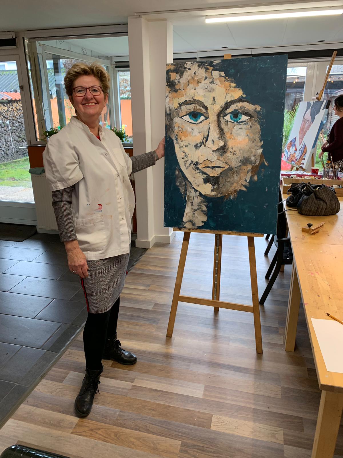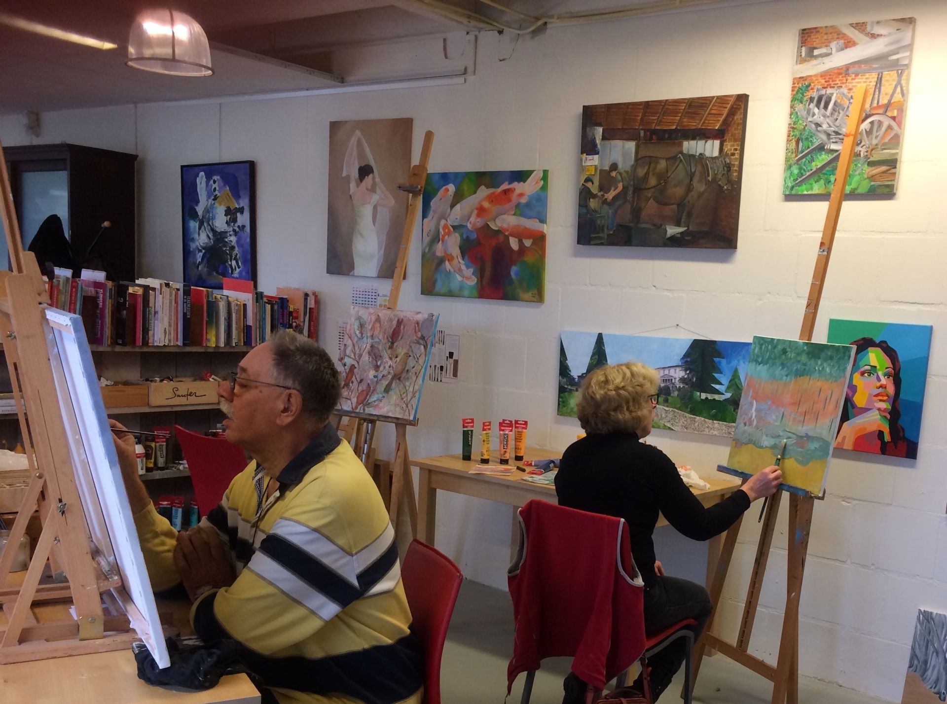 In mijn atelier kan je op een schildersezel aan je schilderij werken, als een echte kunstenaar!
